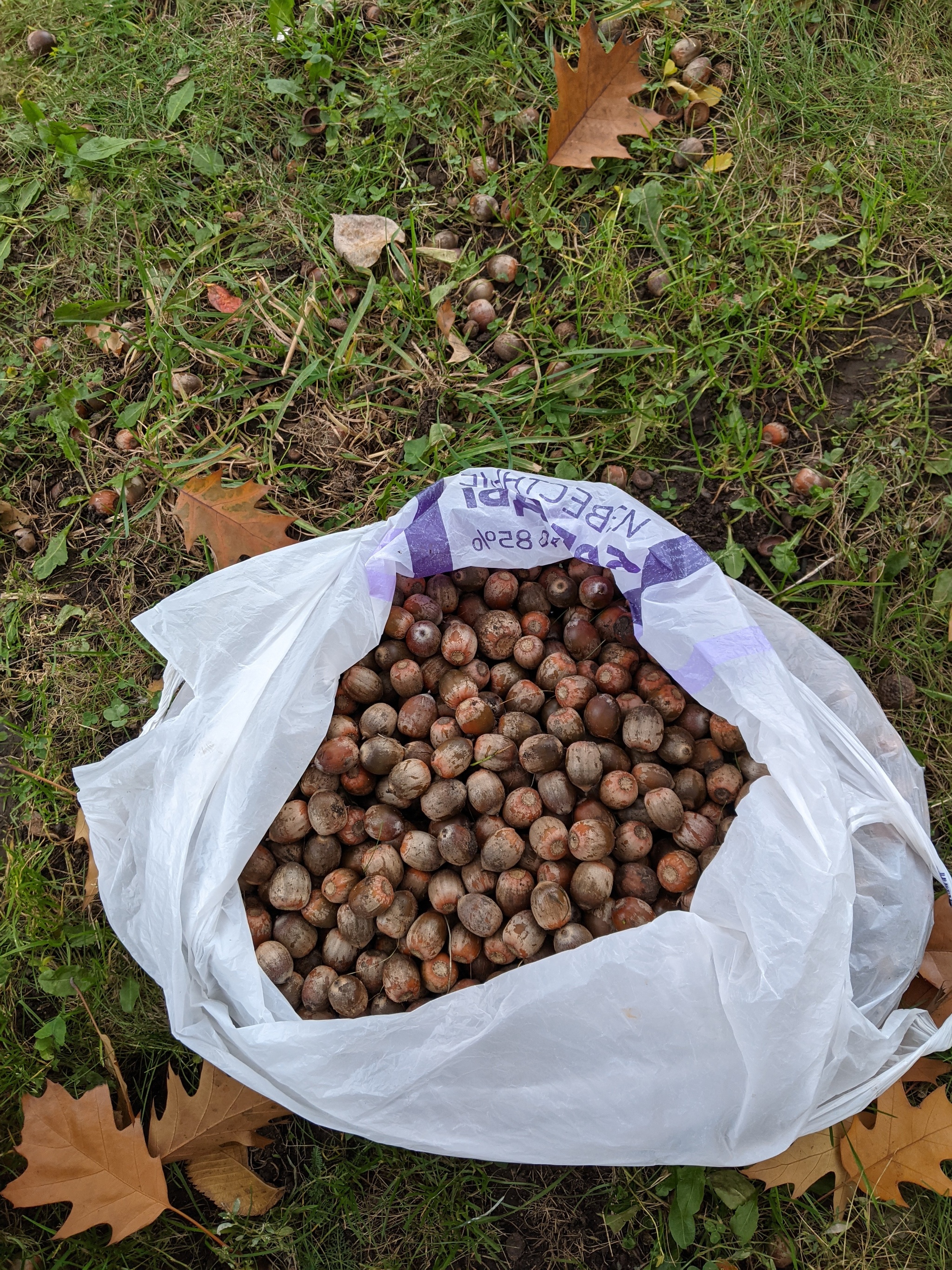 Для первой партии я решила выбрать американский жёлудь. Он крупнее, чем тот, к которому мы привыкли. Больше похож на орех. Ну и рядом с работой у меня четыре таких дуба.