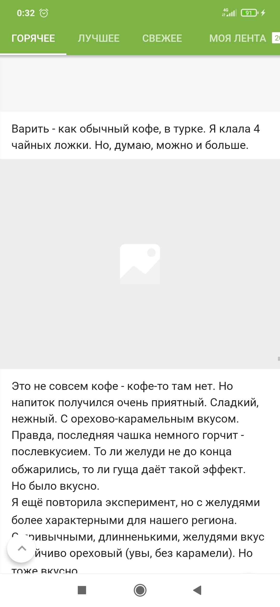 Правда, последняя чашка немного горчит - послевкусием. То ли желуди не до конца обжарились, то ли гуща даёт такой эффект.
