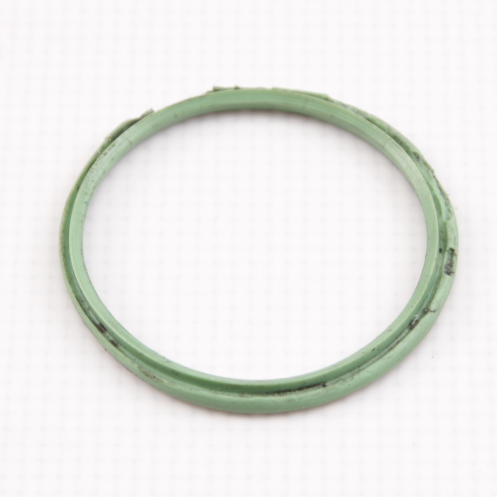 Компрессор безмасляный, тоесть в паре трения поршень-цилиндр скольжение и герметичность обеспечивается не за счет смазывания маслом, а за счет подбора материалов, чья естественная скользкость достаточна для отказа от масла. Как правило это это фтор-полимеры, они достаточно термостойкие и скользкие. Вот из такого материала и сделано зеленое уплотнительное колечко поршня.
