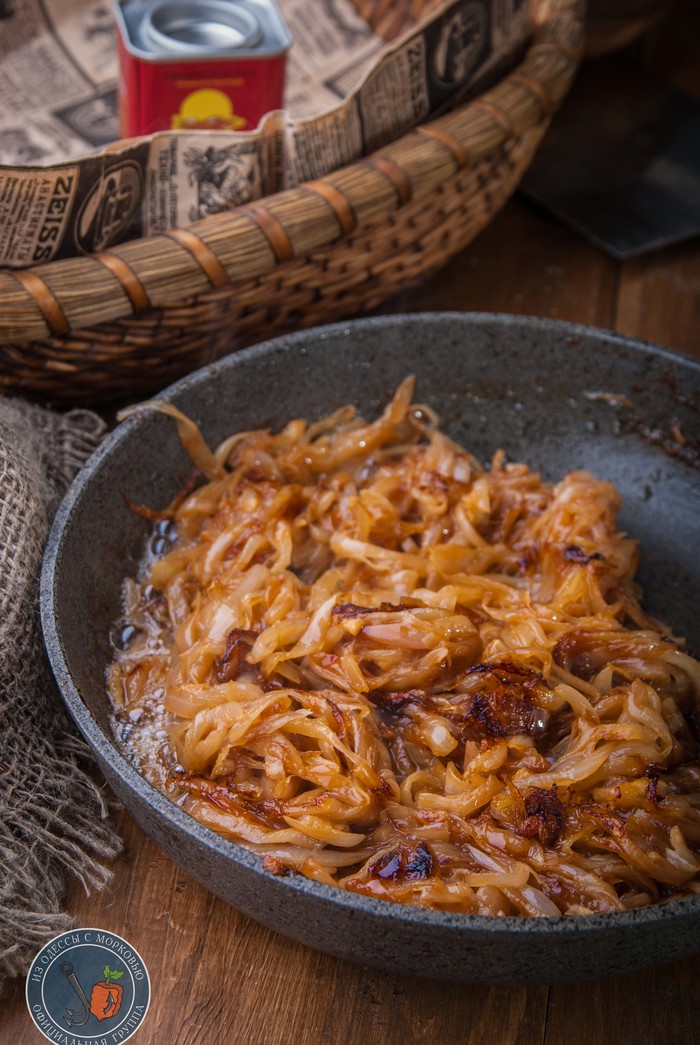 -Кстати, Карамелизованный лук вкусно есть на завтрак на куске подсушенного на сковороде хлеба, с паштетом. И запивать кофе