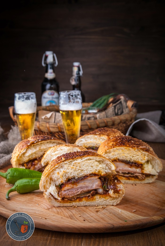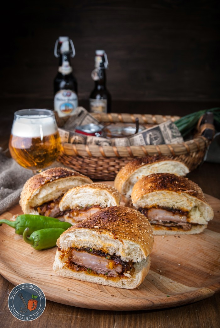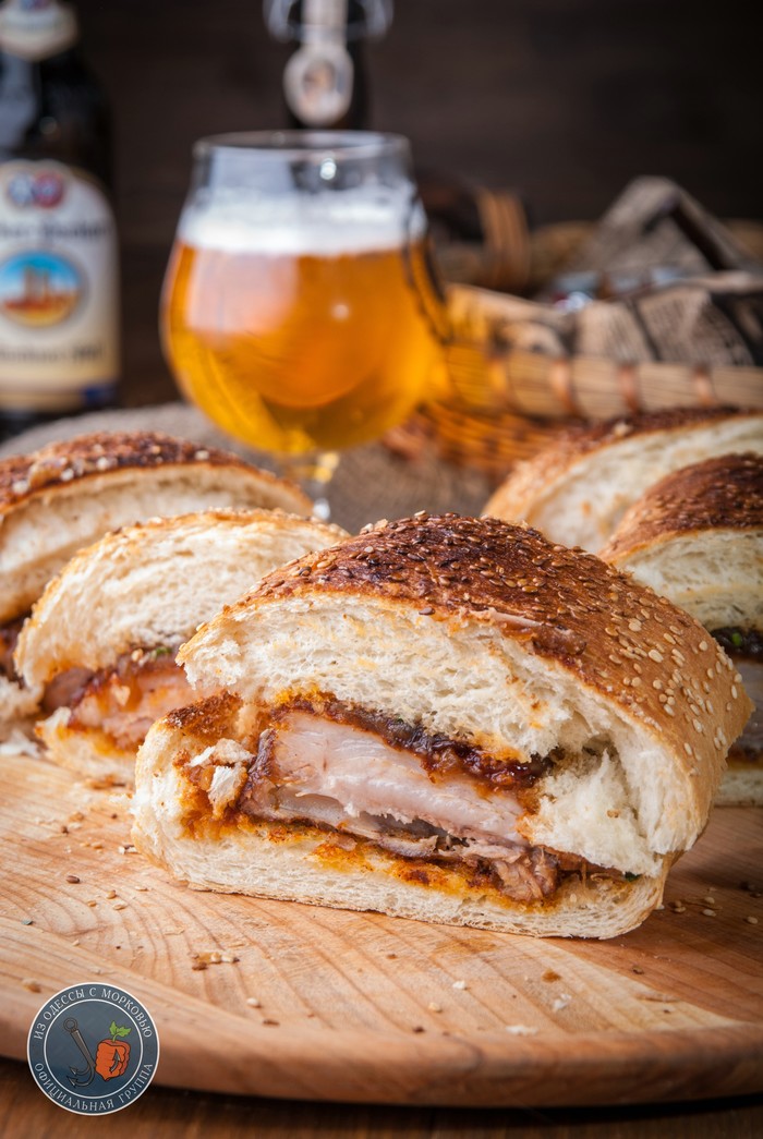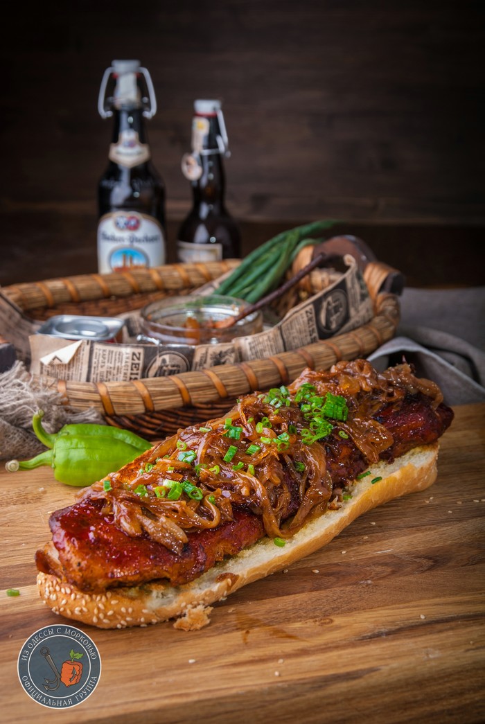 Сэндвич «Большой Папа» с ребрами и карамелизованным луком