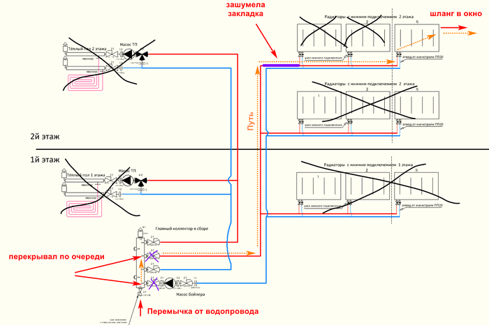 Перекрытие одной батареи приводила к масштабному изменению на разных этажах. Не было никакой прямой взаимосвязи. Без такой предыстории понять, что вообще сделано заужение было бы совсем не просто.
