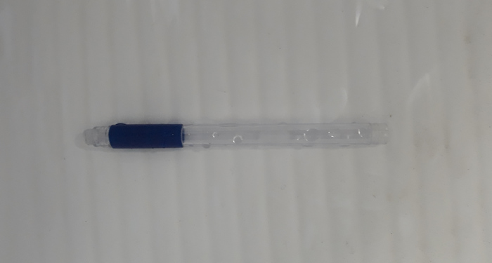 В одну из петель был засунут корпус ручки. Принцип тот же самый, сужение прохода. Кидается в самые длинные петли, где требуется относительно большой поток воды. (Я думаю ручку он нашёл на месте, и сделал это "до кучи")