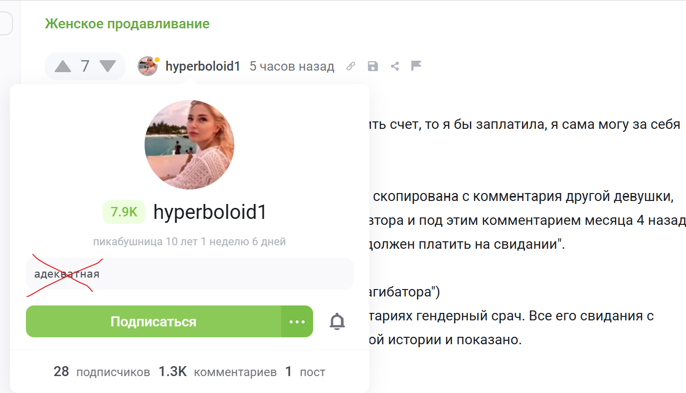 (по итогам первого раунда мой рейтинг понижен, т.к. по её мнению ее мужчина должен платить за всё. Хотя работаем оба)