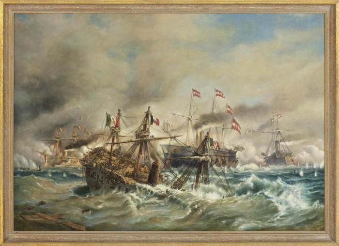 Гибель итальянского броненосца Re d’Italia. Картина художника Карла Фридриха Серенсена