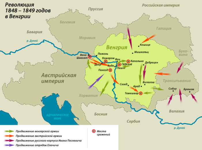 Император Австрии, апостолический король Венгрии, король Богемии, Далмации, Хорватии, Славонии, Галиции и Лодомерии • 1804—1835 Франц II • 1835—1848 Фердинанд I • 1848—1916 Франц Иосиф I Рейхсканцлер • 1821—1848 Клеменс фон Меттерних, князь цу Байльштайн История • 11 августа 1804 Создание • 1805—1814 Наполеоновские войны • 1848 Венгерская революция 1848 года • 15 марта 1867 Венгерская революция 1848 года представляла собой локальную версию общеевропейской революции, осложнённой острым кризисом Австрийской империи и ростом национального самосознания венгров.Место Венгерское королевство Дата 15 марта 1848 — 5 сентября 1849