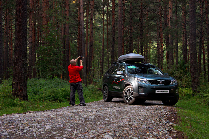 Максимум, что можно было взять с собой - фоторюкзак и штатив. Думается, сборы в любое путешествие проходят с прицелом на минимизацию багажа. Вот и я ограничился фотоаппаратом с парой объективов и парой вспышек. Ни о каких стойках речи идти не могло. Понятно, что можно было ограничиться естественным освещением, но импульсный свет решает много других задач - помогает, например, выделить машинку из фона, прорисовать линии кузова и много чего еще. А чтобы сделать пристойный кадр с машинкой в глухом лесу (на фотопримерах - Алтай недалеко от берега Катуни), как оказалось, можно обойтись штативом и всего одной вспышкой.