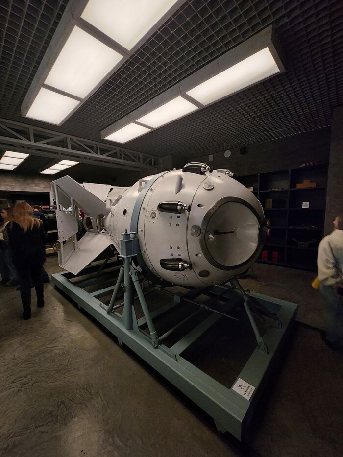 По большому счету взяли пару исторических книг о советском атомном проекте, надергали оттуда цитат и по разным комнатам их развесили. В витринах выставлены копии правительственных документов с указаниями приступить к разработке того или иного проекта. Из реальных экспонатов выставлены макеты атомных бомб, какое-то количество старинной советской аппаратуры и макет кабины атомного ледокола.