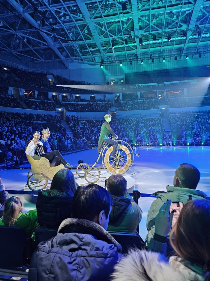 В первый же полный день в Москве, мы посетили втроем с дочерью новогоднее шоу «Золушка» Евгения Плющенко, что проходило в на ВТБ Арене. Билет у нас был на третий ряд, что не самая дешевая опция. Один билет стоил 5000 рублей, на троих с мужем и дочерью мы отдали за это шоу 15000 рублей. Билеты на новогодние шоу однозначно нужно покупать заранее, был полный зал.