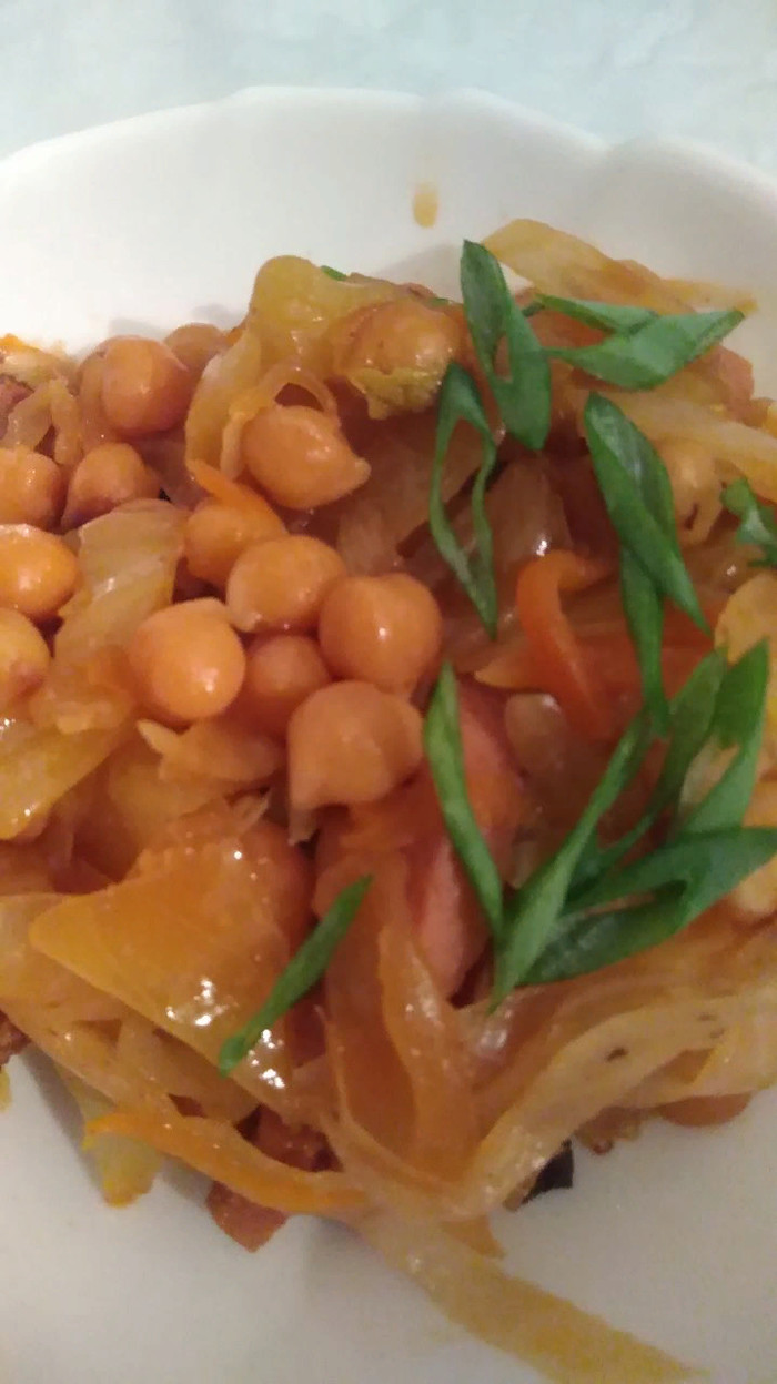 Сначала хорошо обжариваем со специями (перец такой и сякой, соль, чеснок, куркума) потом идут томаты из банки (если сока в банке не много, как у меня, то просто добавьте кипятка из чайника). Варить минут 30.