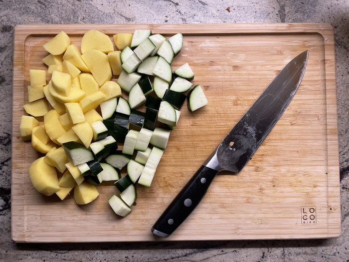 Далее закидываю картошку и варим до готовности. Последние идут цуккини. Они сварятся быстро.