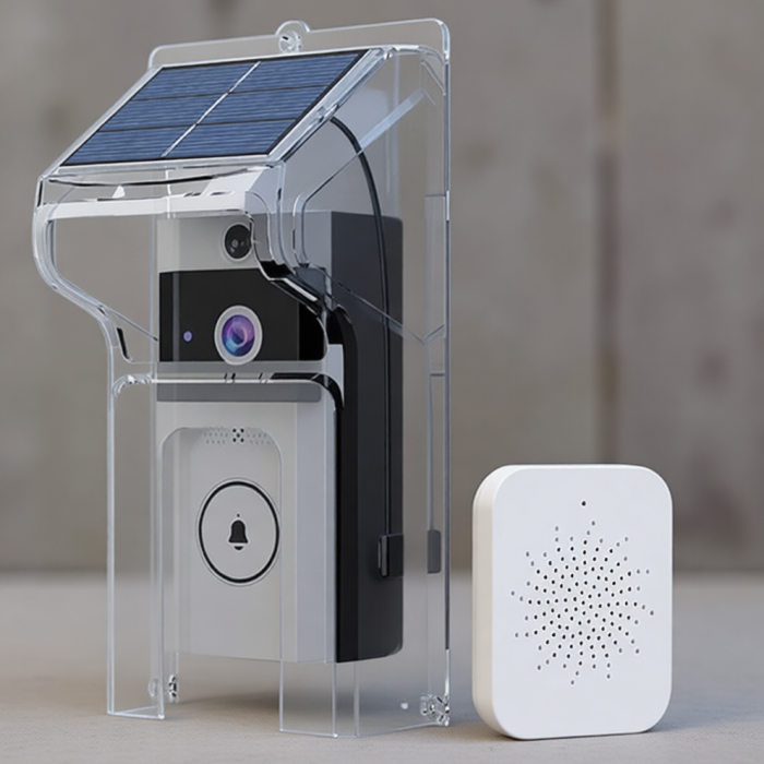 Беспроводной видеодомофон VanKood с солнечной батареей обеспечивает автономную безопасность без прокладки проводов. Солнечная панель на крышке эффективно подзаряжает встроенный аккумулятор, поддерживая круглосуточную работу даже в облачную погоду.