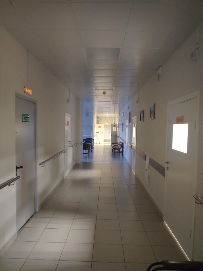 Еду приносили в палату. Телевизора нет. Полотенце, чтобы помыться, выдавали санитарки. Можно было в девять часов вечера позвонить родственникам со стационарного телефона. Я жила от звонка до звонка маме. Ела и спала. Нас отвели взять тест на ковид и кровь из пальца и вены. Я ни с кем не общалась.