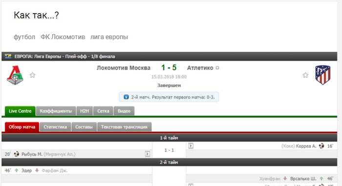 - Что тут комментировать? Проще сказать, что футбол несправедлив. Мы в течение девяноста минут контролировали игру, создавали моменты, заставляли соперника подстраиваться под нас - и проиграли. Поэтому футбол несправедлив. Думаю, что мне упрекнуть команду не в чем. Если бы соперник нас хотя бы в каких-то компонентах переиграл, то я мог бы сказать, что вот тут мы недоработали. Но этого не было. Обидно, что проиграли после простой подачи, там не было никакой комбинации, "Крылья" просто затолкали мяч. 0 очков в игре, в которой должно было быть три полноценных очка. Сегодня бог был не на нашей стороне, так что поздравляю вас с победой.