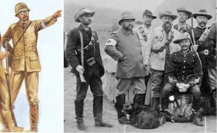 На самом деле похоже, что весь личный состав вышел на поля сражений в смешанной форме одежды: парадные мундиры носились с полевыми или гражданскими брюками; полевая форма одежды часто смешивалась с элементами гражданской одежды. Стандартным вооружением для всего личного состава были винтовки системы Маузера с соответствующими подсумками - при том, что офицеры и унтер-офицеры также располагали револьверами.