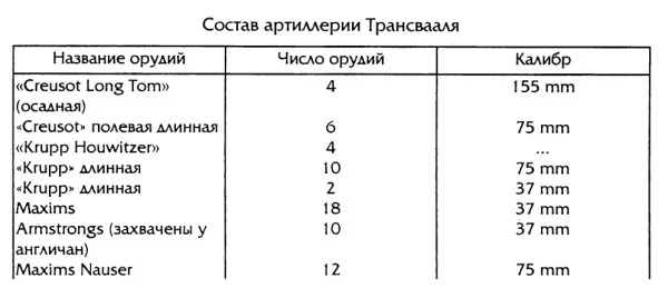 "В дополнение... ниже изложены некоторые данные об организации трансваальской артиллерии, - сообщал он. - В мирное время содержится около 400 человек полевой артиллерии и 200 человек крепостной.