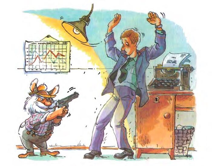 Правда, на иллюстрациях к первому изданию книги вещающий из телевизора Ельцин на себя не очень похож, да и по имени его никто не называет — но перепутать все равно сложно. Во-первых, ну а кто у нас еще в 1990-е был президентом, а во-вторых, из его уст звучит знаменитое «понимаешь».
