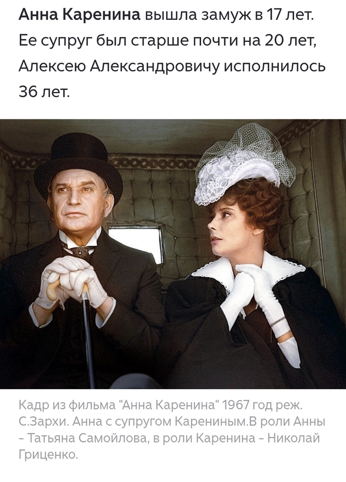 Обновление: Разница в 20 лет, на момент замужества Анне 17, Каренину 37, действительно, что могло пойти не так.