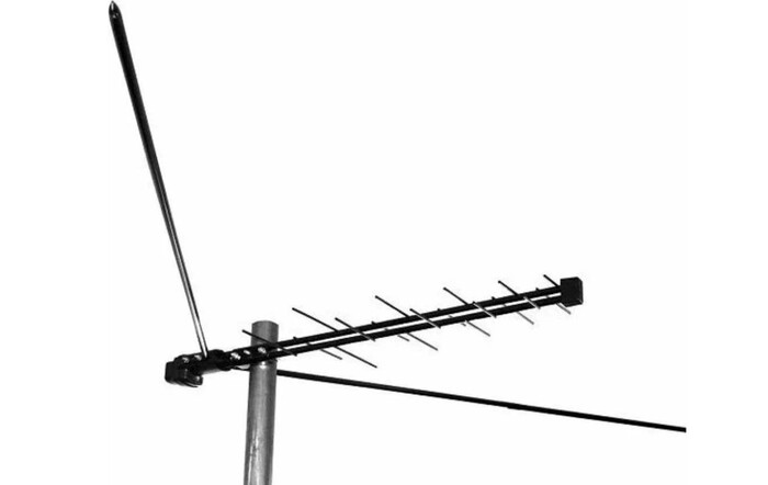 Уличная антенна, долговечная и устойчивая к погодным воздействиям. Хорошее решение для небольших населённых пунктов и городов.