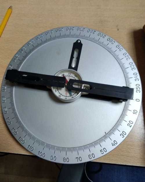Вращаем алидаду так, чтобы луч света, проходящий между визирами, превратился в тонкую щелочку. Также можно наблюдать за тенью визиров, как на фото ниже. Если вы смотрите на звезду - то щель между визирами, в которую видно звезду, должна быть минимальна. Читаем показания на угломерной шкале (3), куда указывает алидада.