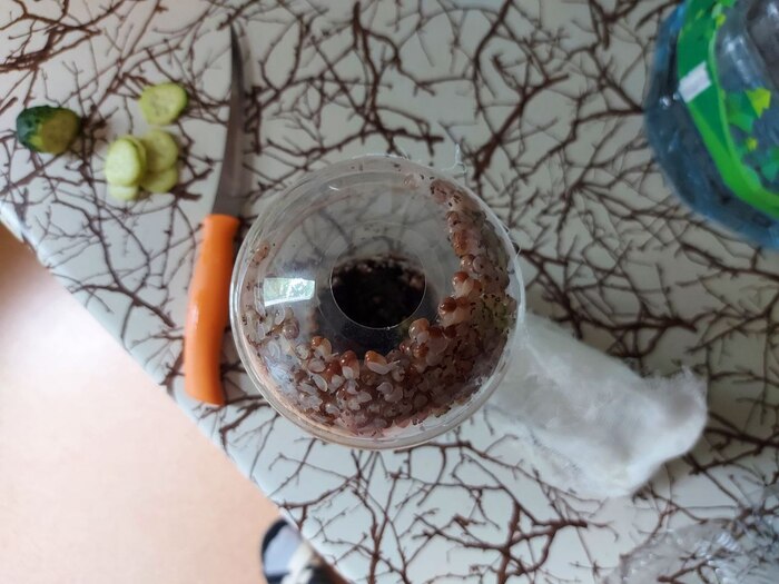 Спустя пару недель, улиток было порядка 250, и, очевидно, всех их выращивать я не планировал. Почитав разные источники и пораскинув мозгами, решился на отбраковку - когда по каким-то внешним признакам часть улиток забирается из общего выводка, охлаждается (чтобы впали в спячку) и замораживается (чтобы уже не проснулись).