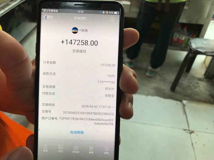Хозяин заведения обнаружил это только когда подсчитывал месячную прибыль (обычно она около 10 000 юаней в месяц ), и сильно удивился, увидев сумму перевода по мобильному платежу.