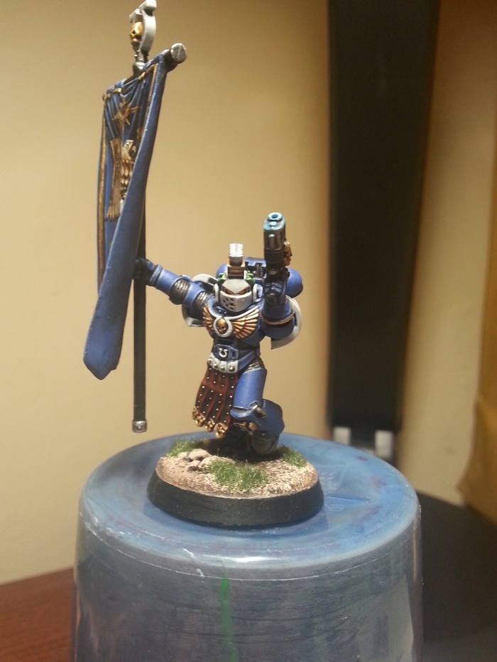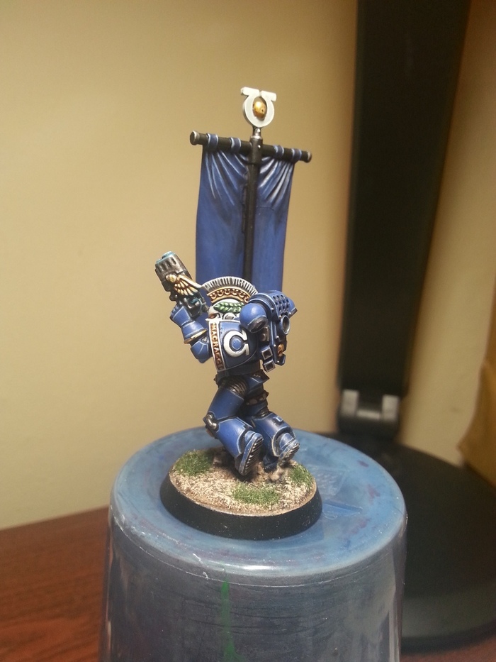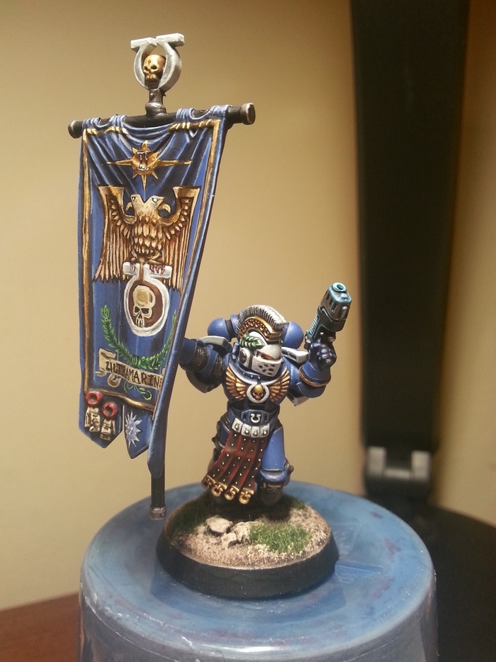 Доброго всем дня. Медленно, но верно, вырисовывается армия. В этой работе цель была - осилить фрихенд знамени второй роты указанного ордена, так что маринчик покрашен довольно простенько...