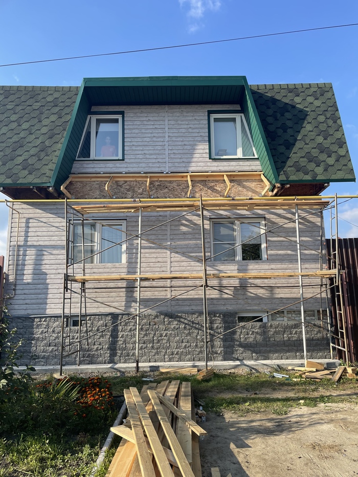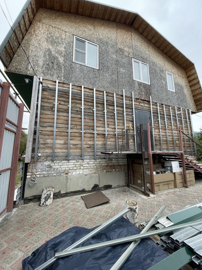 Два года назад заметил, что от осадков дом постепенно приходит в негодность, особенно второй этаж, который из ОСБ. Так пришла мысль, что нужно обшивать.