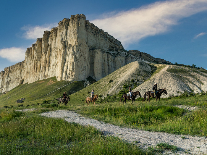 7. Белая Скала окружена множеством мифов и легенд, одна из которых гласит, что в пещере Алтын-Тешик («Золотая Нора»), вход в которую находится на высоте 52 метра от основания скалы, раньше жил дракон, похищавший красавиц со всей округи. А разбойники хранили там свое золото, что дало ей такое название. Впрочем, по факту это даже не пещера, а грот.