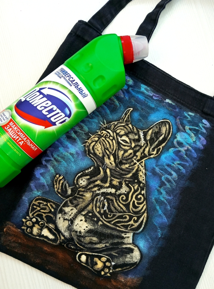 Сегодня попробовала новую для меня технику в росписи. Это рисование белизной. Очень набирает спрос- роспись белизной. Фон сделала краской по ткани.