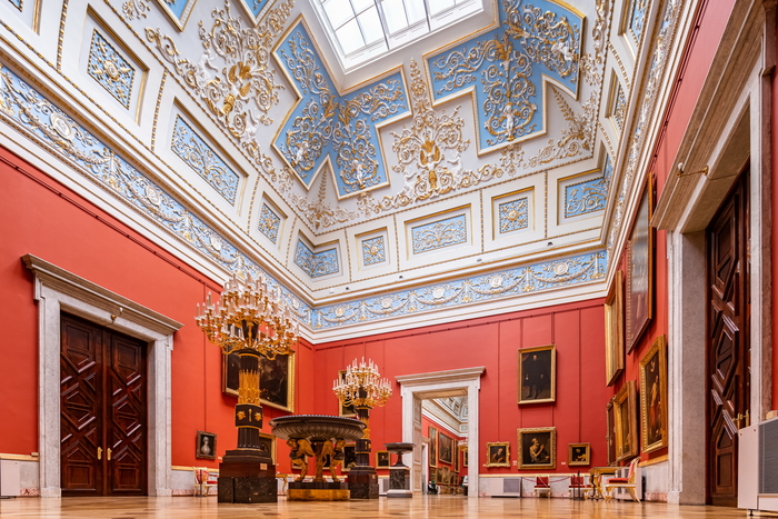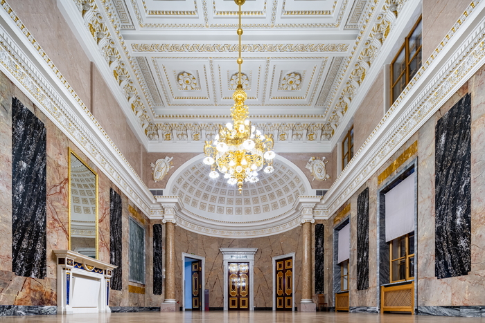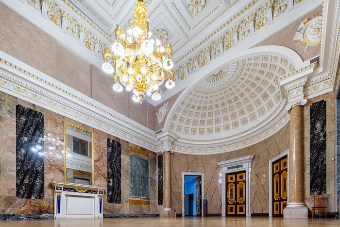 В начале декабря снимал интерьеры Михайловского замка. Бесплатно снимать не пускали ни в один дворец музейного комплекса "Русский музей" - пришлось идти туристом )) Официальная съёмка на момент написания запроса составляла 5000 рублей в час. Снимал на мини-штативе камерой Sony A7RII и тилт-шифт оптику Canon.