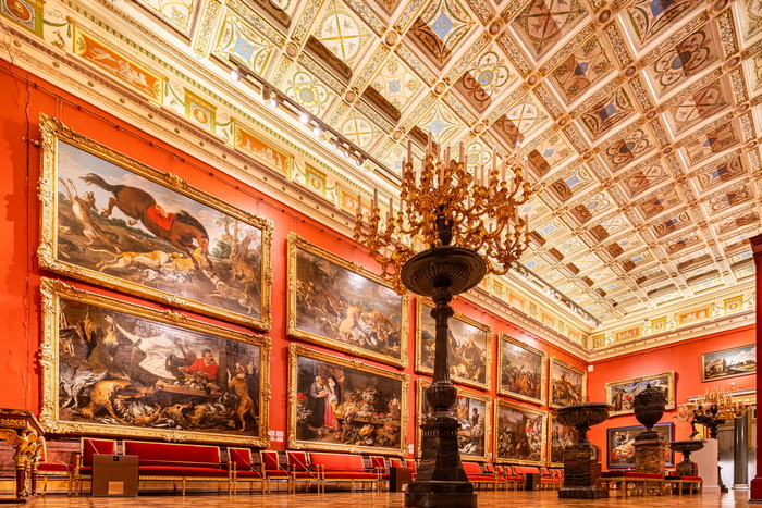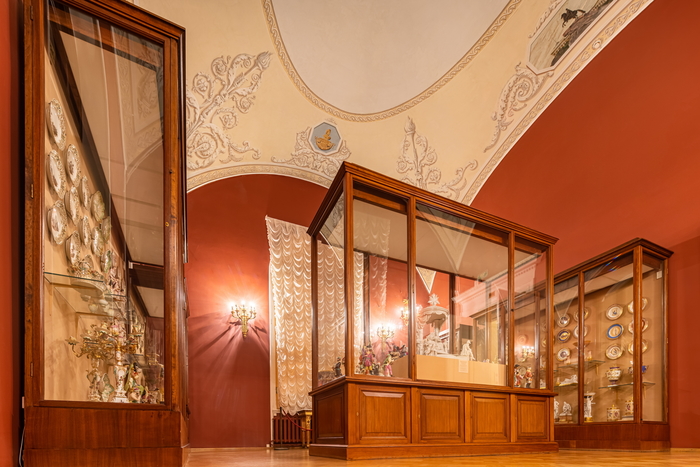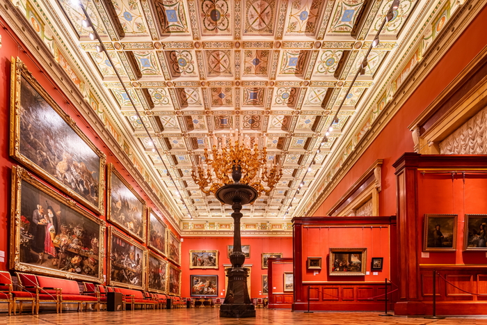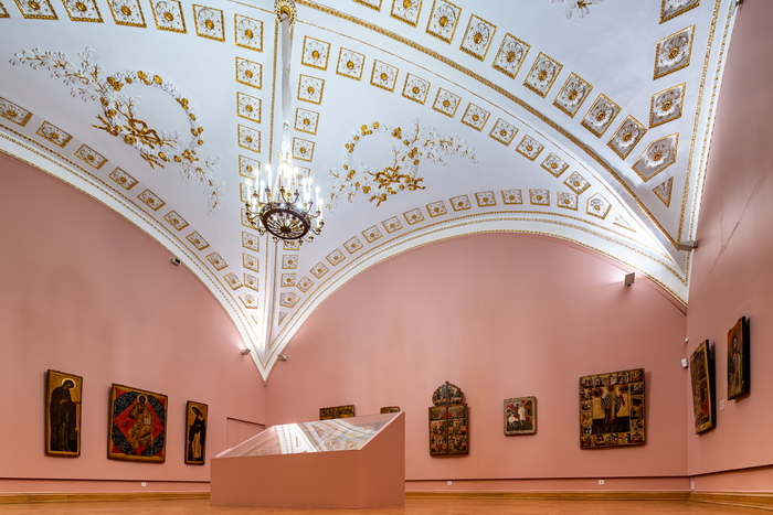 В музее в дневное время очень много воздуха и света, думаю, что вполне можно снимать что-нибудь удобоваримое с рук на невысоких значениях ISO. Стены основных залов окрашены в разные оттенки бордо, на фоне которого живопись смотрится просто великолепно и так-как картины не освещаются прожекторами, то на них практически нет бликов.