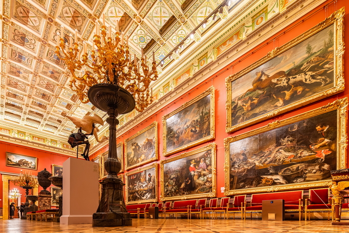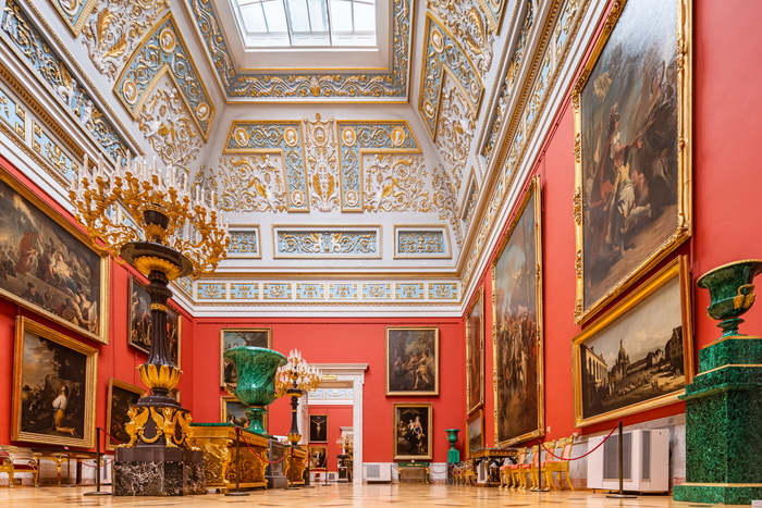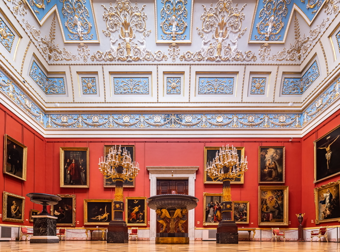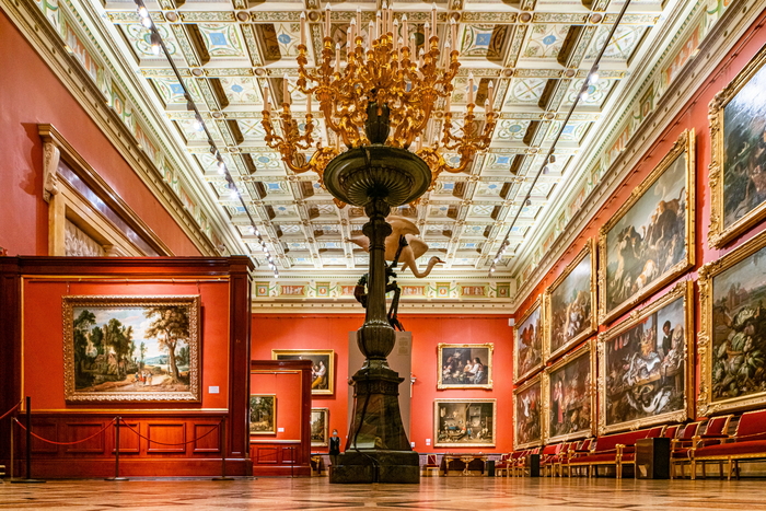 Когда пандемия осенью обрубила поток туристов, я решил воспользоваться моментом и отснять те дворцы, куда я не смог попасть на официальную съёмку. В залах Эрмитажа я работал с 18 до 20 часов вечера, чтоб за окнами уже было темно, народу было как можно меньше и в целом по музею приятней гулять и работать без толп грязных китайцев в кадре. Бывали моменты, когда в залах кроме меня не было ни одного человека в течении 10-20 минут. Этого времени в принципе достаточно для того, чтоб найти интересный ракурс, выстроить композицию и снять серию кадров на длинной выдержке. Фотографы-коалы, которые иногда могут сползти с лиан в музей, берите на заметку, кто хотят обогатить своё портфолио красивыми интерьерными кадрами !