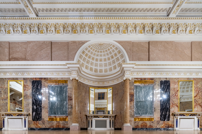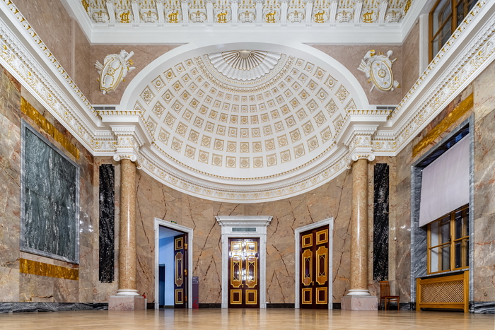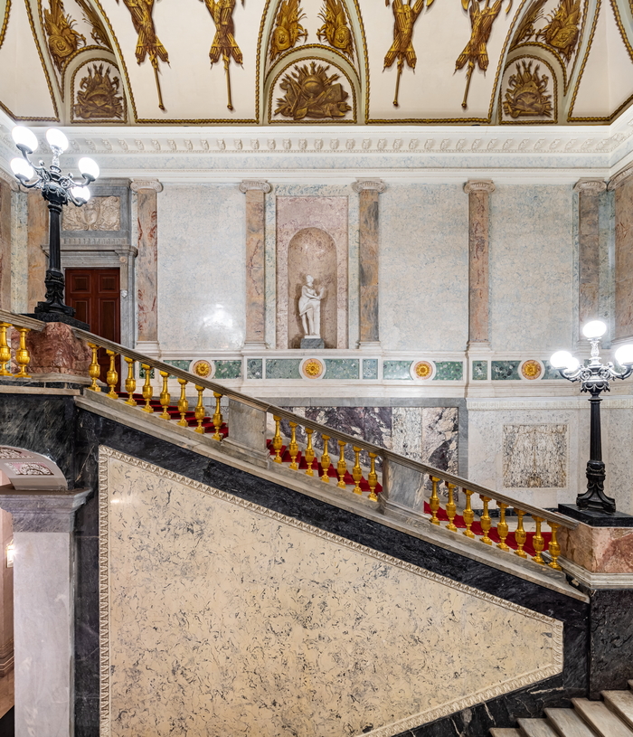 В другой день у меня уже было больше времени для работы и охранник мне любезно включил везде освещение. Решил всё сделать в Ч/Б, так-как считаю, что классическим интерьерам хорошо подходит такой вариант представления интерьера - хорошо читаемая архитектура, графичность, общая акцентуация внимания именно на интерьере. Но сделал ещё несколько кадров и в цвете, хотя чую их надо переретачить заново.