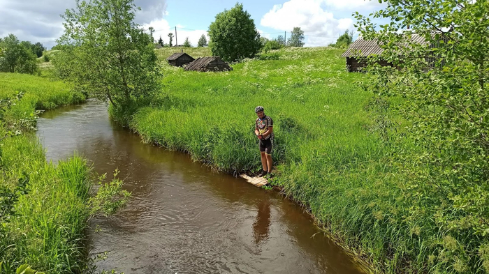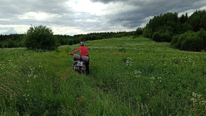 На дворе начало лета 2021 года. Осока, крапива, бурьян с цветочками и без, вышиной в пояс, а где-то и чуть выше. Небольшой лесок - жуткая чаща с буреломом, в который даже пешком нечего соваться, не то что с нашими гружеными велосипедами. Ну и деревня, как исходная, так и наверняка та, в которую я планировал держать путь представляют из себя несколько заколоченных домов, смотрящих печальными глазами окон сквозь пожирающие их заросли быстро одичавших деревьев, да чёрные срубы с провалившимися крышами, уже практически погребённые в зелёном растительном море.