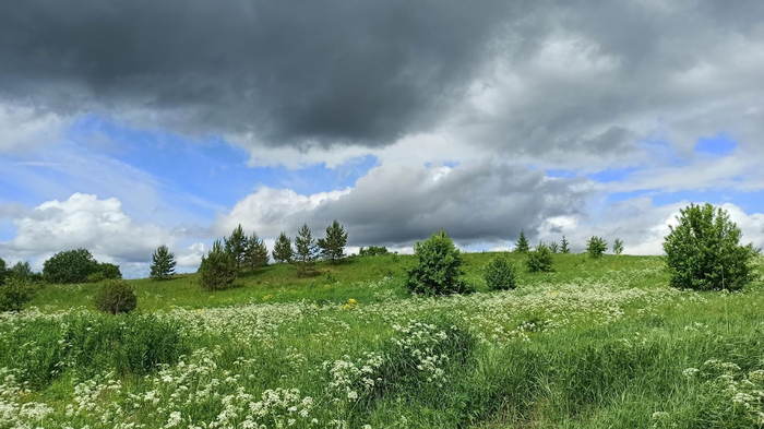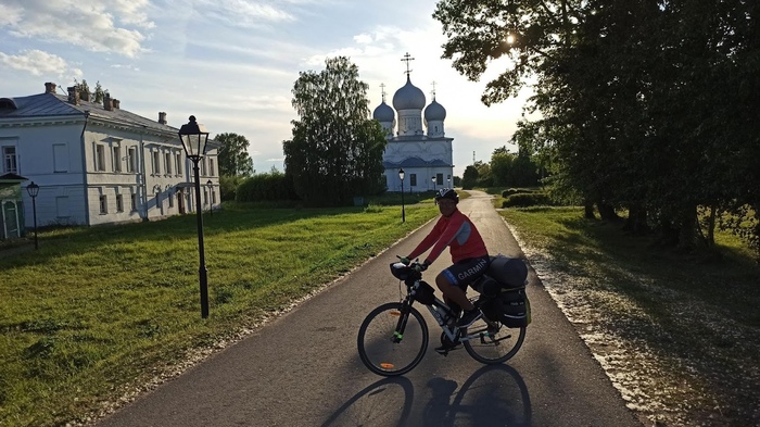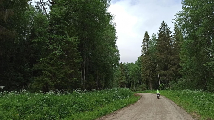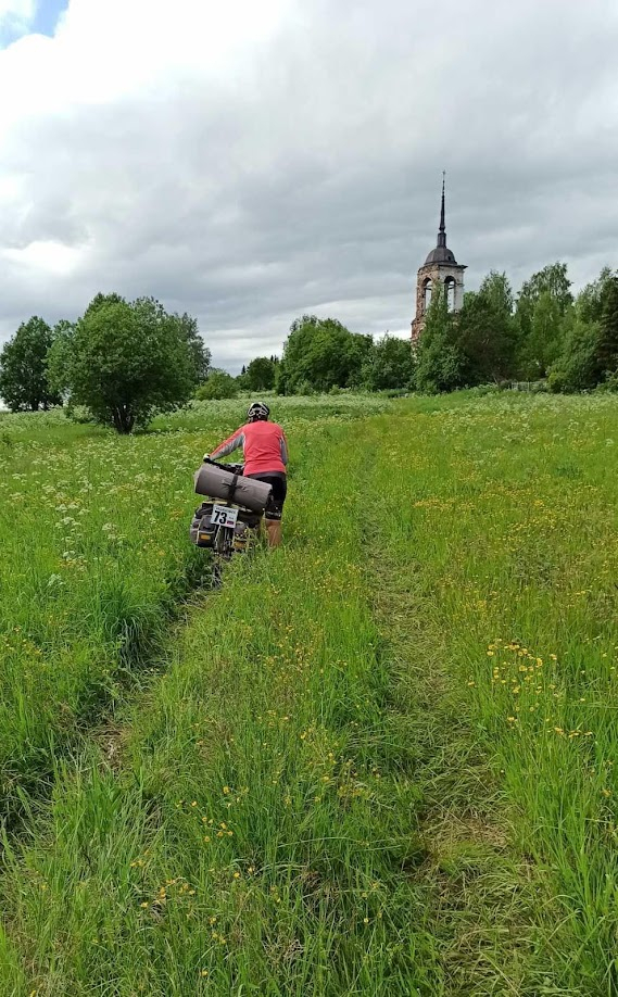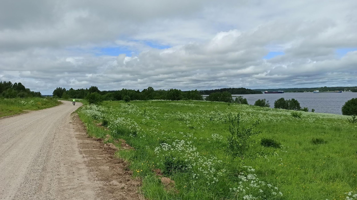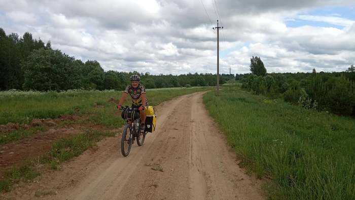 День 28 (Вологодская область г.Белозерск). Осадки удачно обходят нас стороной, однако, от росы всё вокруг мокрое, будто лило всю ночь. Если бы не выкошенная поляна, сушиться пришлось бы долго. Выходим на дорогу опять с любимой ездовой погодой Ирины. Небо в тучах, совсем не жарко, можно даже ветровки накинуть, хотя я предпочёл бы солнце, уж больно велики шансы, что вода из этих тучек вдруг захочет вылиться нам на голову.