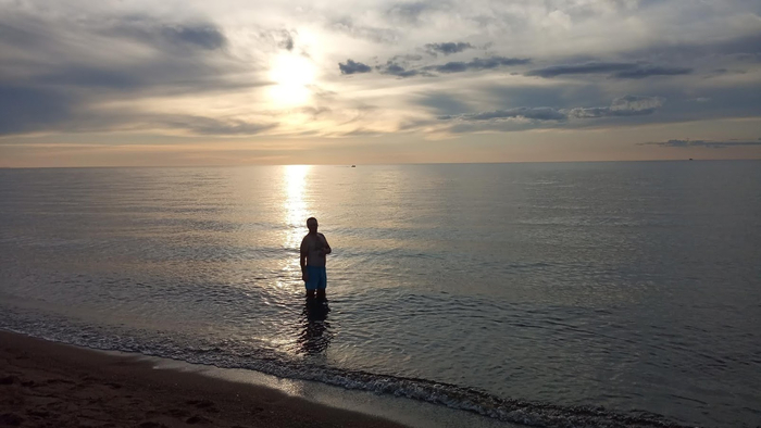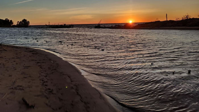 В голове две основные мысли, объединённых в одну. Где встать на ночлег чтобы обязательно как следует помыться. Катим к самому озеру. Водная гладь завораживает, конца и края не видно. Один в один море, только вода пресная.