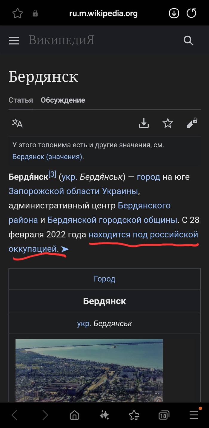 Зашёл недавно на вики посмотреть информацию о Бердянске... интересно получается...
