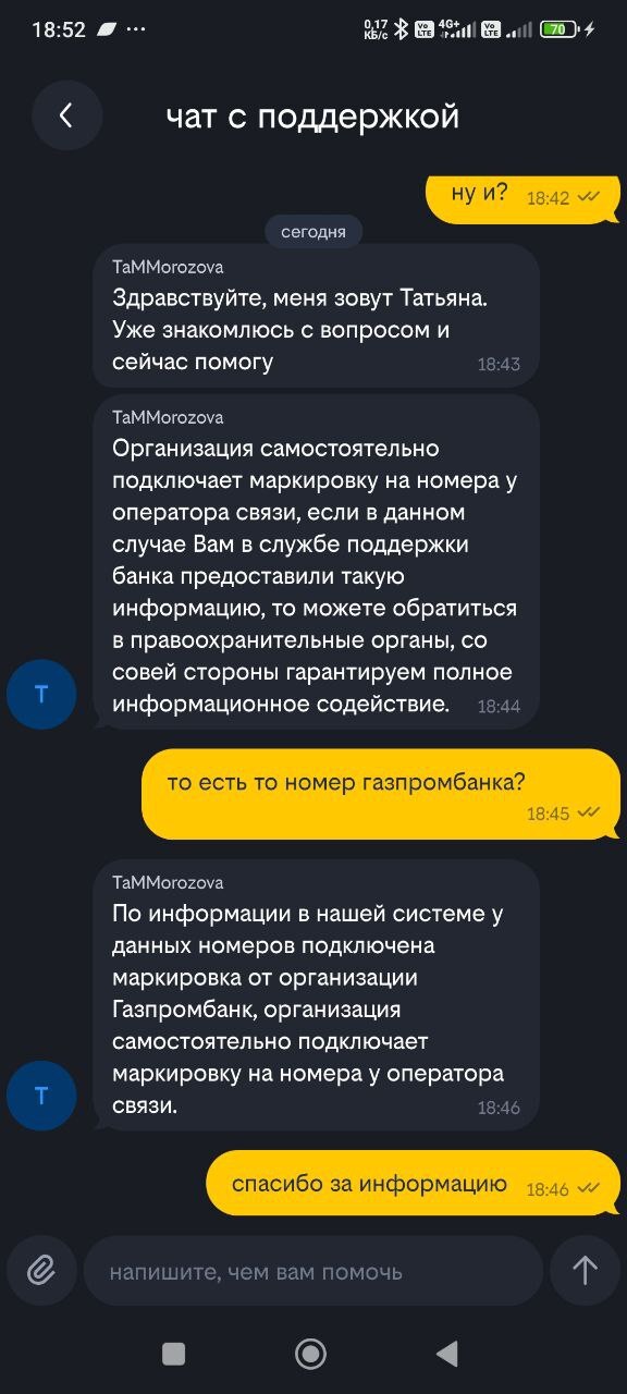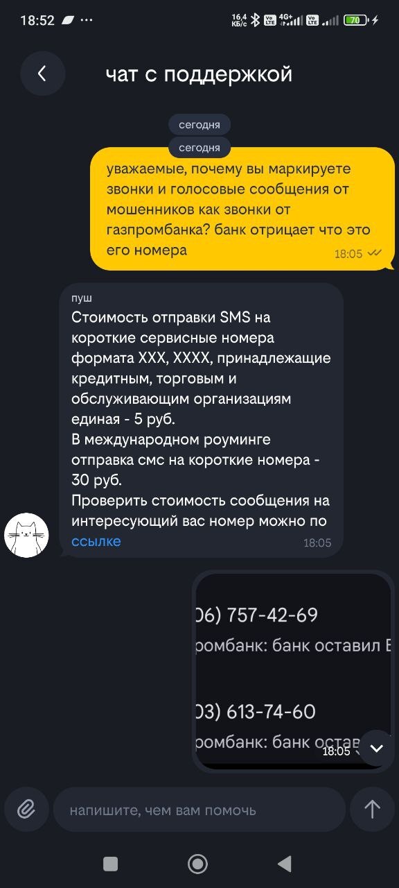 лезу во входящие звонки и вижу что мой китайфон заблокировал несколько входящих звонков и пометил как "спам". На всякий случай уточняю в поддержке @Gazprombank, (у меня кредит у них) зачем они так настойчиво звонят, в ответ получаю: "Это не мы, номера нам не принадлежат". См. карусель