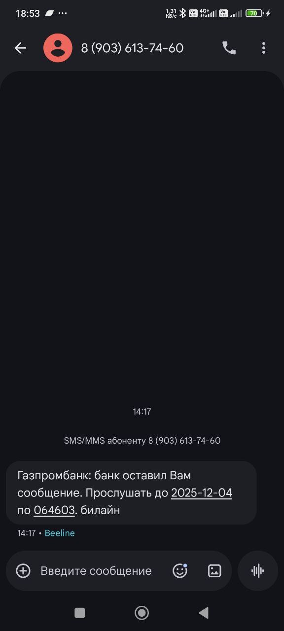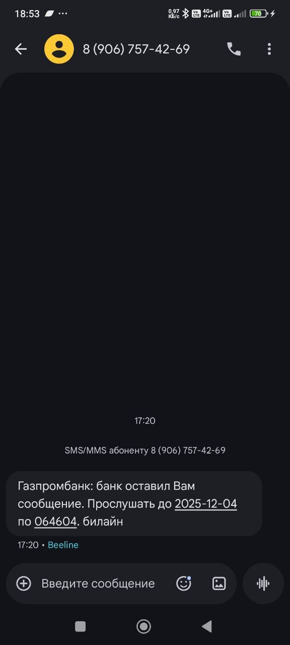 В общем ситуация: получаю от Билайна несколько уведомлений о поступивших голосовых сообщениях от Газпромбанка (все с разных номеров), пару скринов прикладываю: