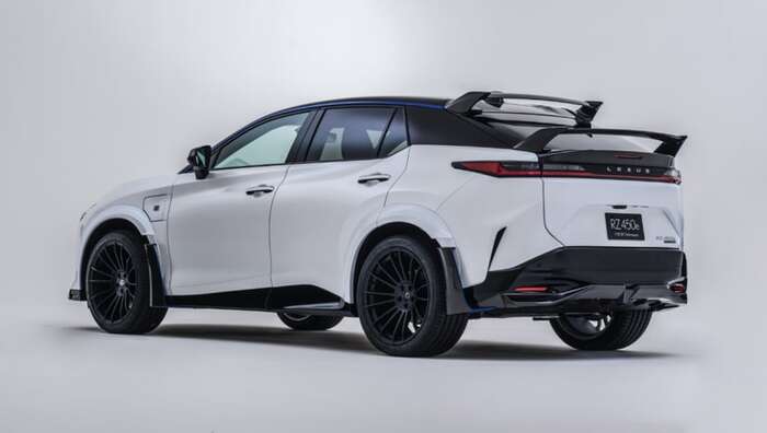 Lexus RZ получил карбоновый капот, иной формы бамперы с углепластиковыми вставками, накладки на колёсные арки с аэродинамическими винглетами, а также развитые спойлеры и карбоновую крышу. Экстерьер авто дополнен ярко-синими акцентами и матово-чёрными 21-дюймовыми колёсами Enkei.