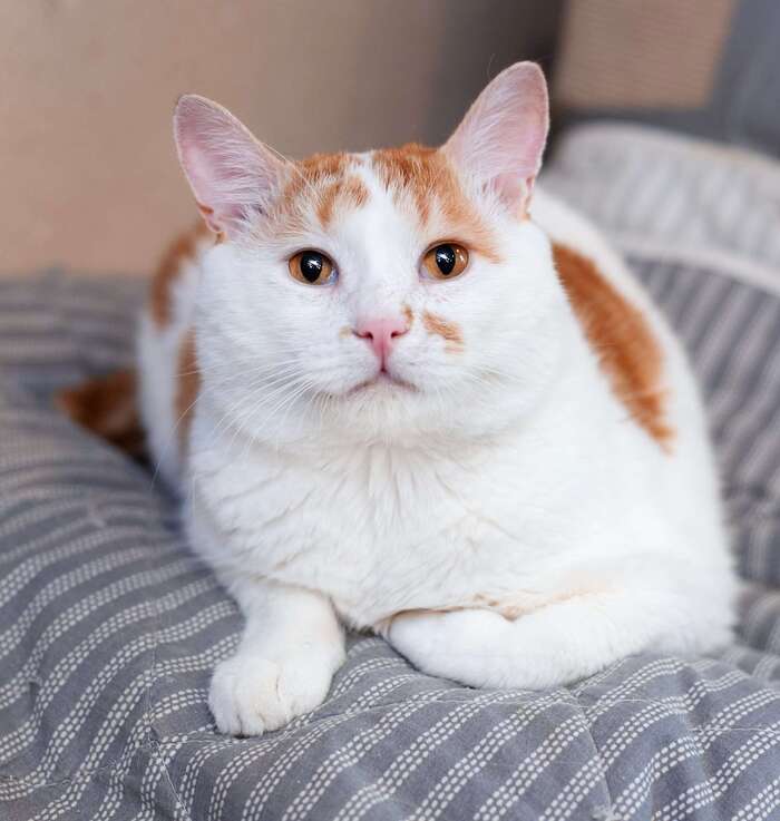 Мальчика забрали из закрывшегося питомника бобтейлов. Не поручимся за чистоту его бобтейльской крови, но хвостик у него коротенький, как у бобтейла.