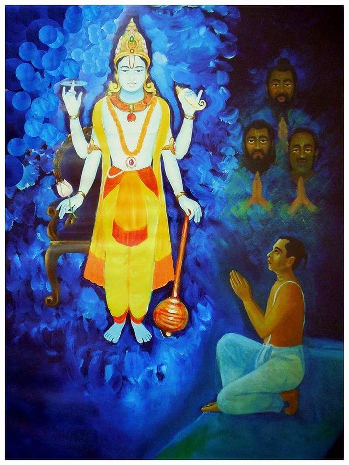 Рамакришна же знал Нарена. Задолго перед его приходом, погрузившись в Самадхи, Он, отделившись от своего плотного тела, вышел в область Солнца и достиг сферы чистых Идей. Там Он увидел Семь Риши. На коленях одного из них появился младенец, в радости пролепетавший: «Я иду на Землю, пойдем со мной!»