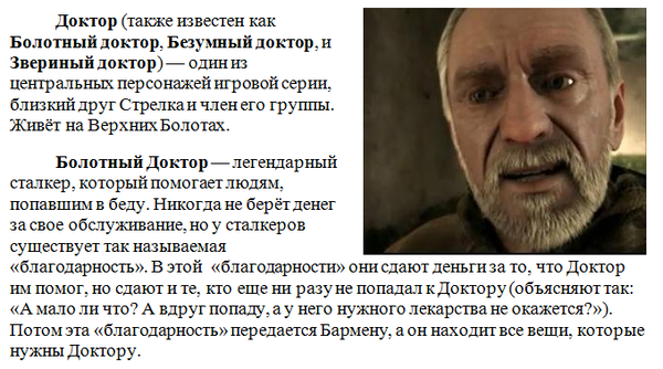 296 JoKeR74 S.T.A.L.K.E.R. Болотный доктор, его роль и его Бенито 9 лет назад Показать полностью 6 [моё] Сталкер Лига сталкеров Длиннопост Доктор Болотный доктор