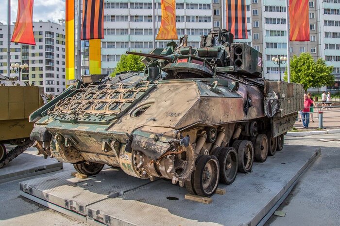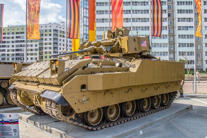 Рядышком с Абрамсом стоит M2A2 Bradley в состоянии как будто это не трофей, а подарок.