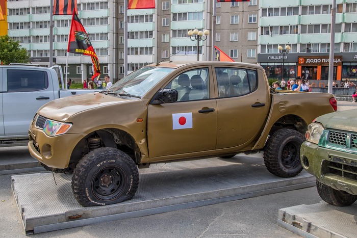 Бронеавтомобиль повышенной проходимости HMMWV или просто Хамви. Легковую Митсубиси и Тойоту пропускаю. Честно, не понял, зачем они на выставке трофеев. Обычные машины, которые в городе видишь каждый день.