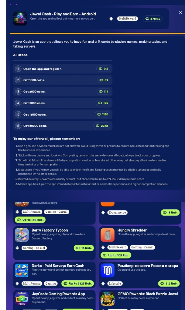 Типичная буст платформа. Из предлагаемых заданий подписки в телеге, в вк, рутубе, ютубе. Написание фейковых отзывов на Авито, Яндексе и его картах и некоторых других платформах. Просмотр видео, участие в голосованиях, регистрация на других платформах, и тому подобное. Серфинг сайтов.