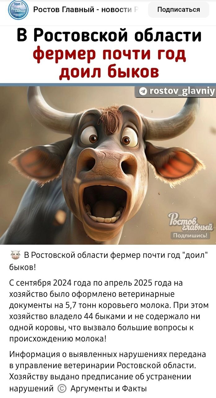 170 tiSamdurak Всякая херня Год доил быков 16 дней назад Показать полностью 1 Юмор Фермер Бык Скриншот Заголовки СМИ Аргументы и факты Дойка коров 53 26 3 3 2 Ещё 0
