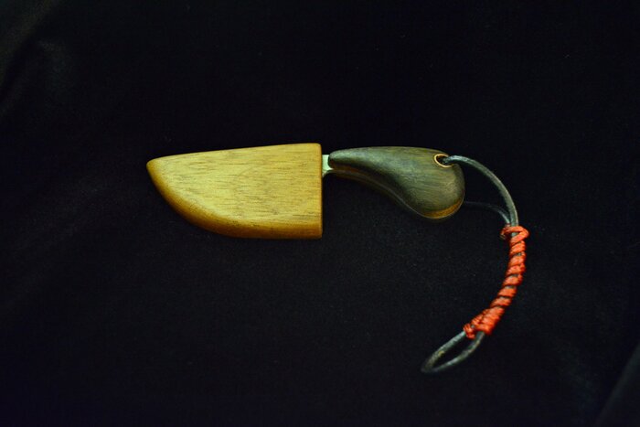 Нож "Грибник"- сталь Р6М5, финиш пескостуй, рукоять из морёного дуба > 3000 лет и красного дерева (сапеле). Ножны из красного дерева и замшем внутри. Делал пару дней, размер с ладошку