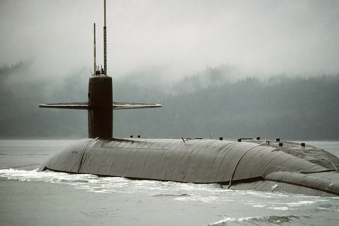 У Соединенных Штатов, конечно же, есть, и не одна, подлодка. Но мы рассмотрим особенности и боевые возможности действующих американских ПЛАРБ класса «Огайо», являющихся основой МСЯС США и одними из лучших подводных ракетоносцев в мире, обладающих высокими тактико-техническими характеристиками(W=16746/18750т; L=170,7м; b=12,8м; T=11,1м; Н рабочая=365м/Н предельная=550м; ЯЭУ-S8G; Q=220 Мвт; V=17,0/25,0 уз; 24 ШПУ с БРПЛ «Трайдент II» D-5; 4 ТА с БК 12 т-д «Мк-48»; ГАК AN/BQQ-6/10).